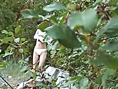 Blue-blooded spy video of a unshaded peeing in the bush Part 4