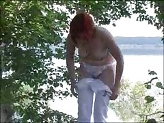 Redhead outdoor enthusiast pissing near the lake Part 1